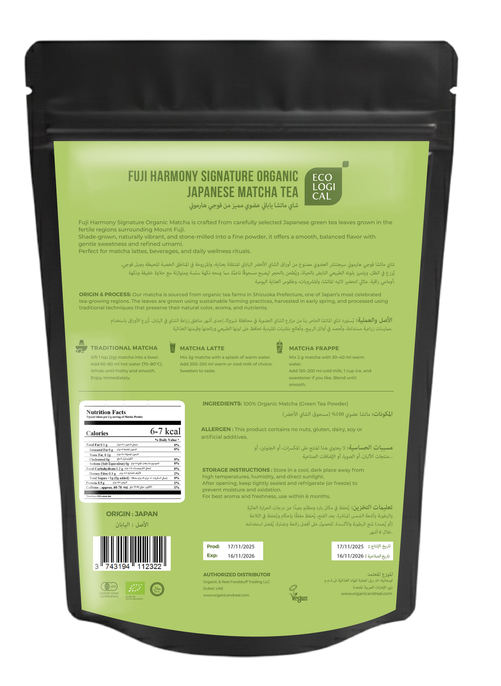 Ecological Fuji Harmony Signature Organic Matcha Tea Powder, 150g