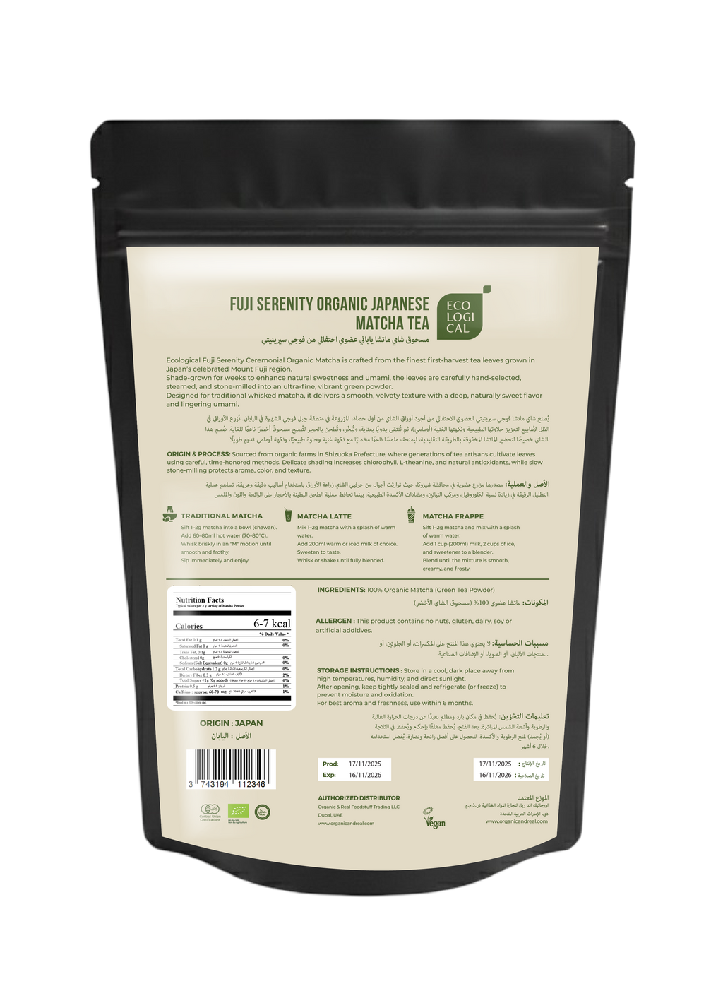 Ecological Fuji Serenity Ceremonial Organic Matcha Tea Powder, 150g