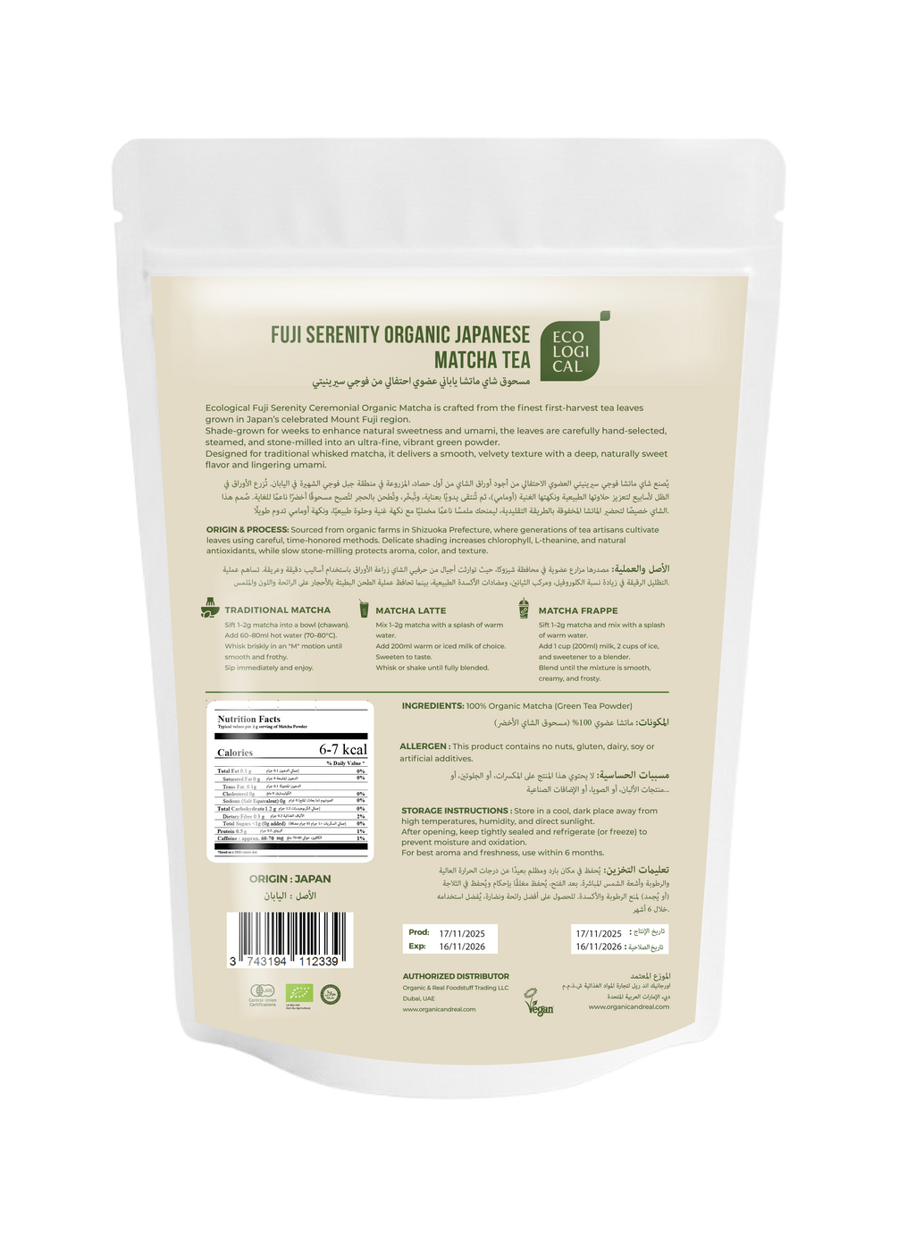 Origin – Sourced from organic farms in Shizuoka Prefecture, Japan.