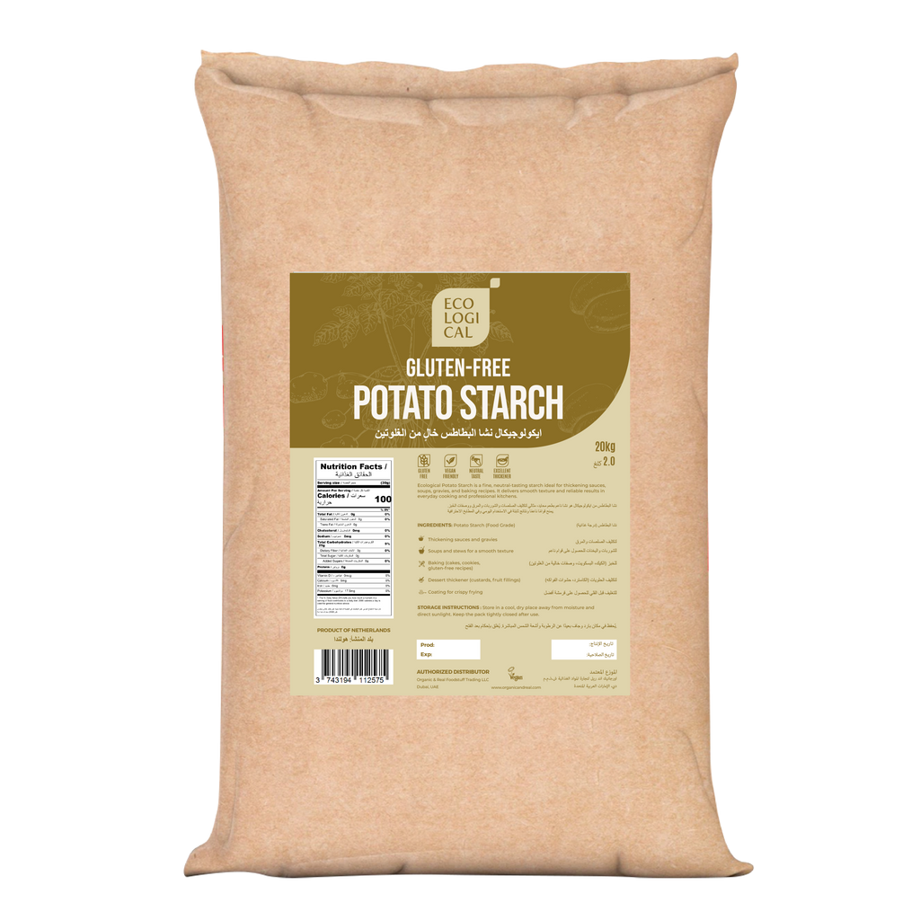 Ecological Gluten-Free Potato Starch is a fine, neutral-tasting starch carefully processed for smooth and reliable results in everyday cooking and baking. Known for its excellent thickening ability, it is ideal for enhancing texture and consistency across a wide range of recipes.